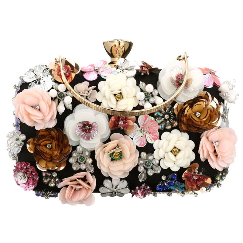 Fashion Flower Beading Square Lock clasp Evening Bag