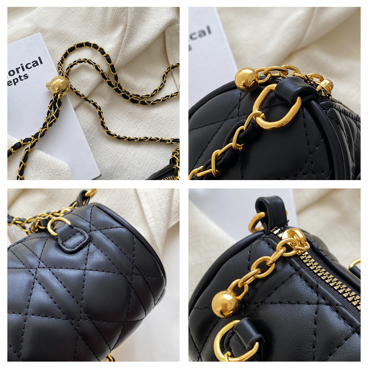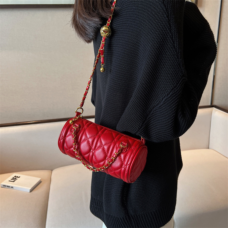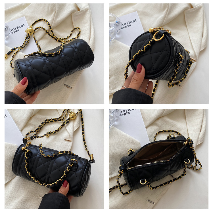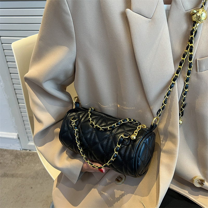 Fashion Lingge Cylindrical Zipper Crossbody Bag