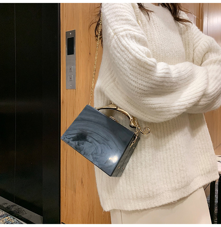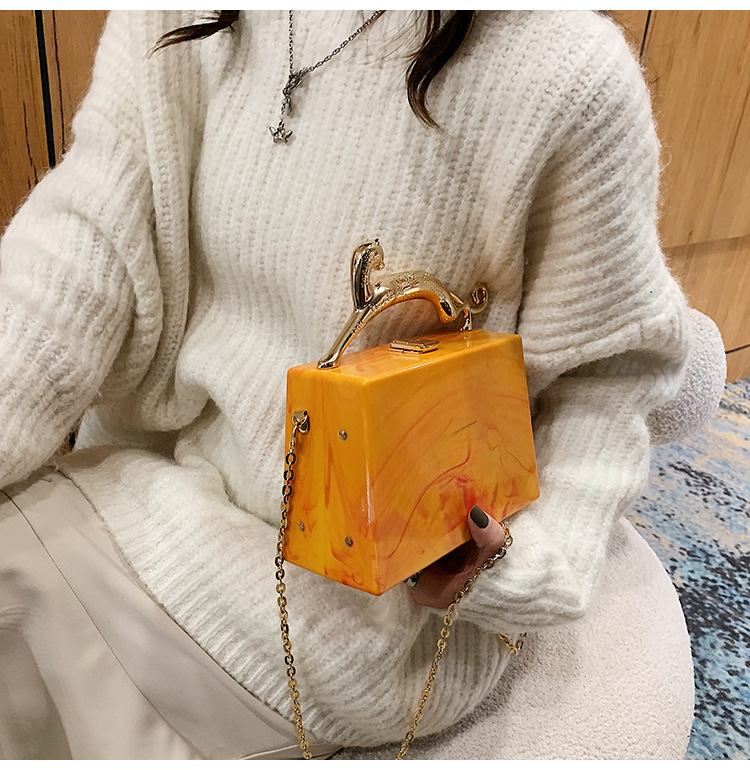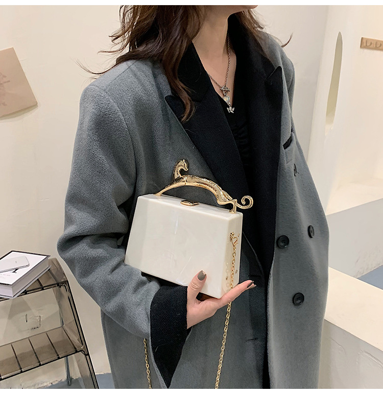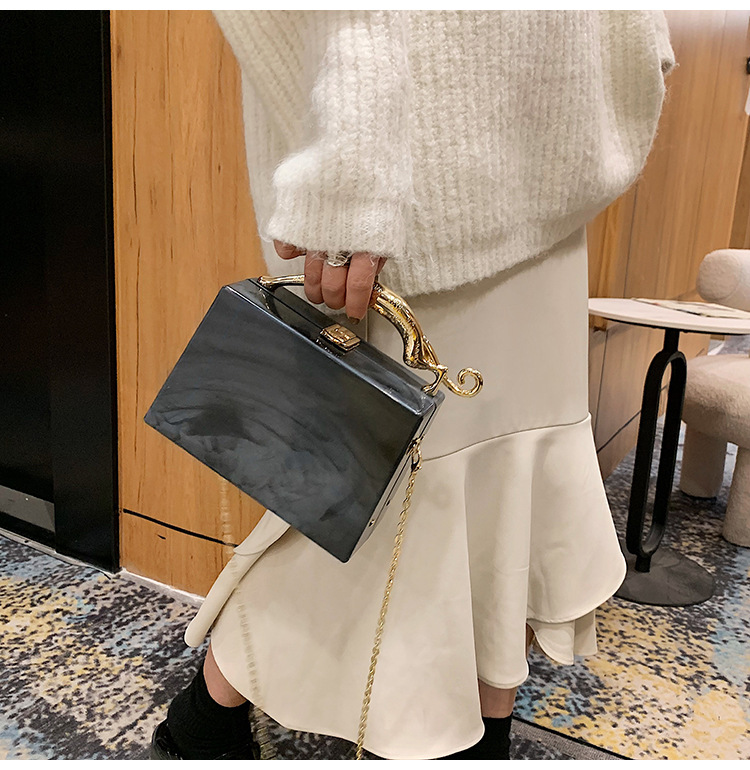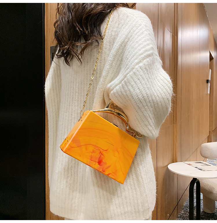Fashion Solid Color Square Lock clasp Handbag