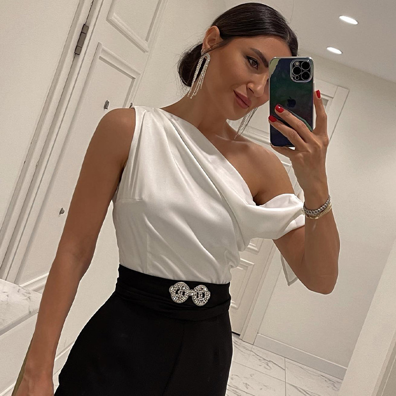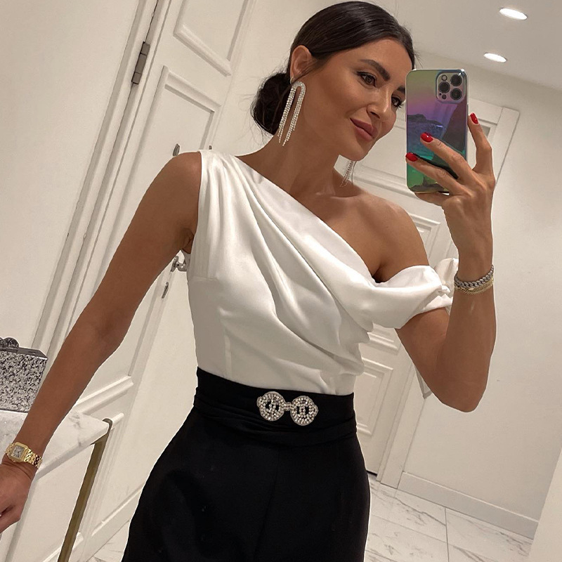 Lace-up sleeveless off-the-shoulder solid color satin tops