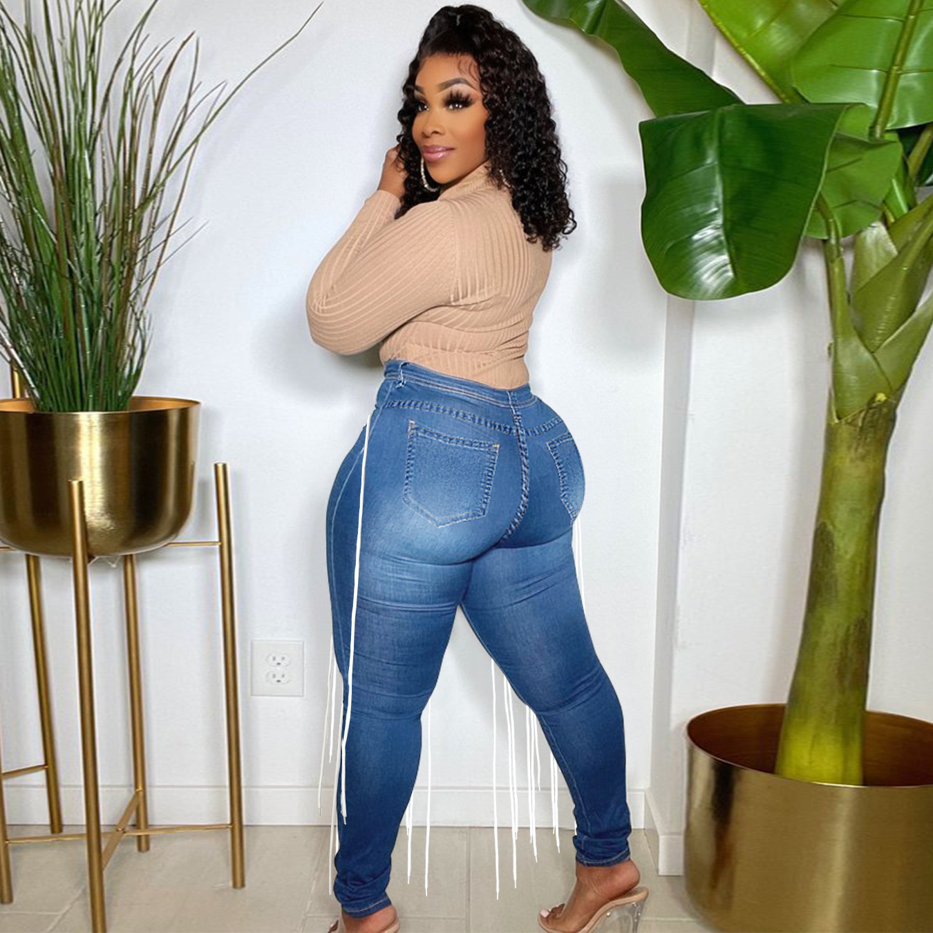 mid stretch bandage draped jeans clothing