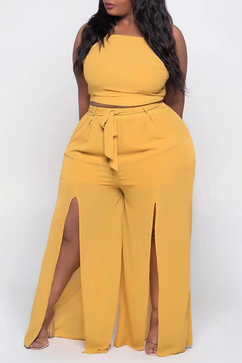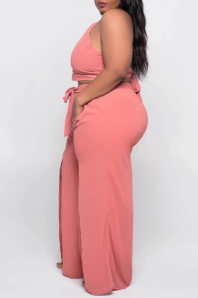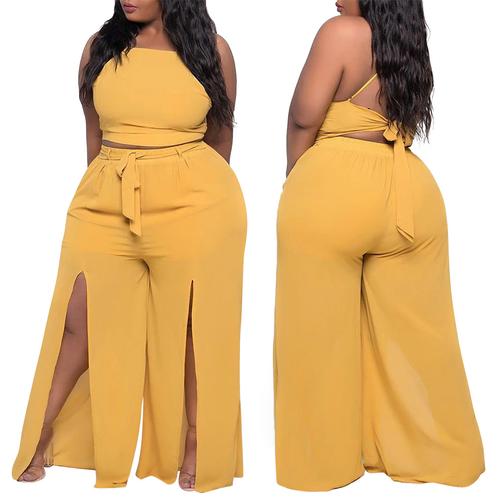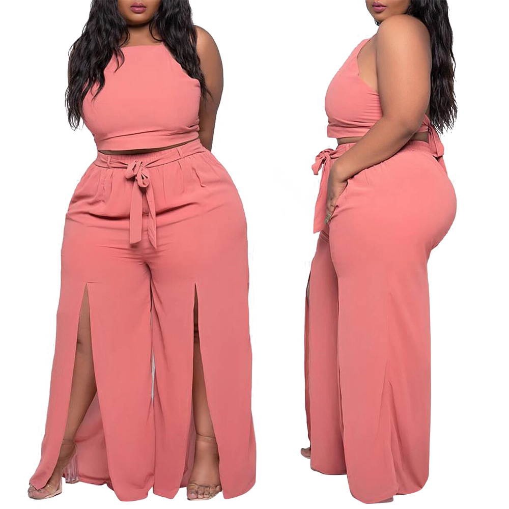 Plus size casual split wide leg pants two-piece set clothing vendor